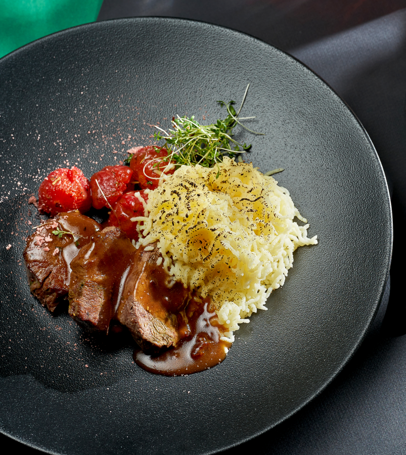 Small portion of fried carp with mashed potatoes
