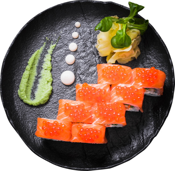 Topped with cucumber and roe